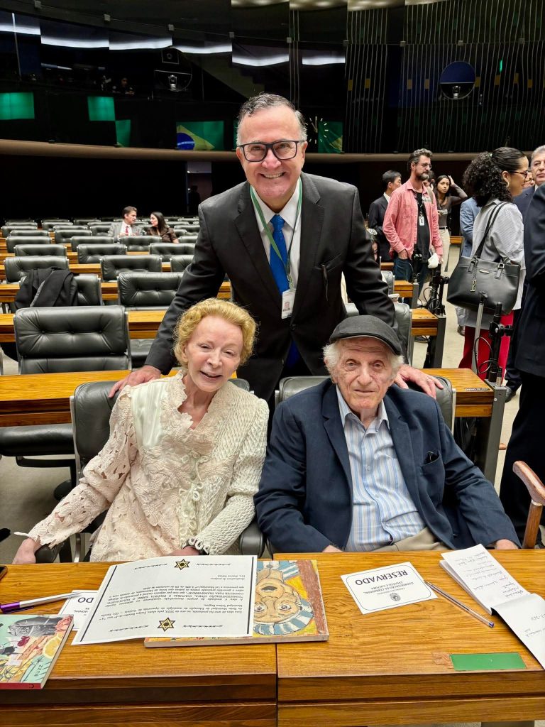 Voltei hoje à Câmara dos Deputados por uma razão maior que a rotina política: participar da Sessão Solene do Dia da Lembrança do Holocausto e reencontrar Gabriel Waldman, sobrevivente da Shoah.